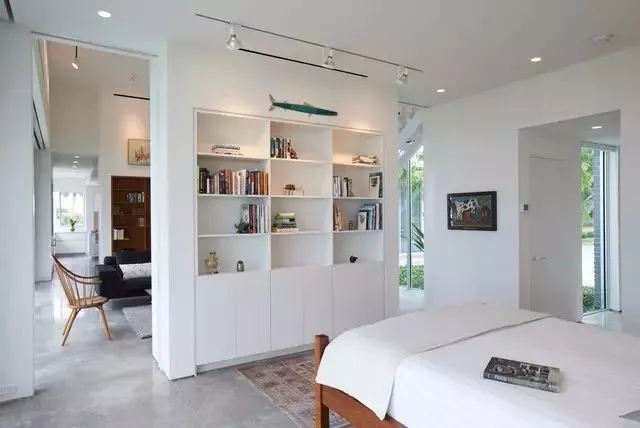 有的是采用的是書柜,書柜隔離了兩個空間,使屋子充滿了書香氣息,是愛書之人是比較青睞的,這種隔離的方式,使書柜有空間可以放,也節(jié)省了墻面的金錢