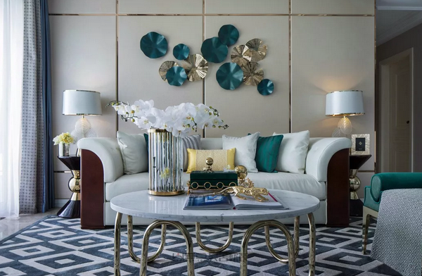對于大戶型來說,更少的考慮面積,更多的考慮設計感,那么這兩面焦點墻的設計,就相當于室內設計風格的濃縮。新古典和新中式風格的背景墻運用到客廳,可保持風格統一,時尚大氣有檔次。