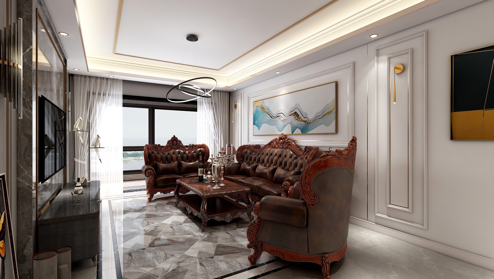 優(yōu)雅的沙發(fā),給空間營(yíng)造出復(fù)古懷舊的調(diào)調(diào),掩蓋不住著貴族的氣息。