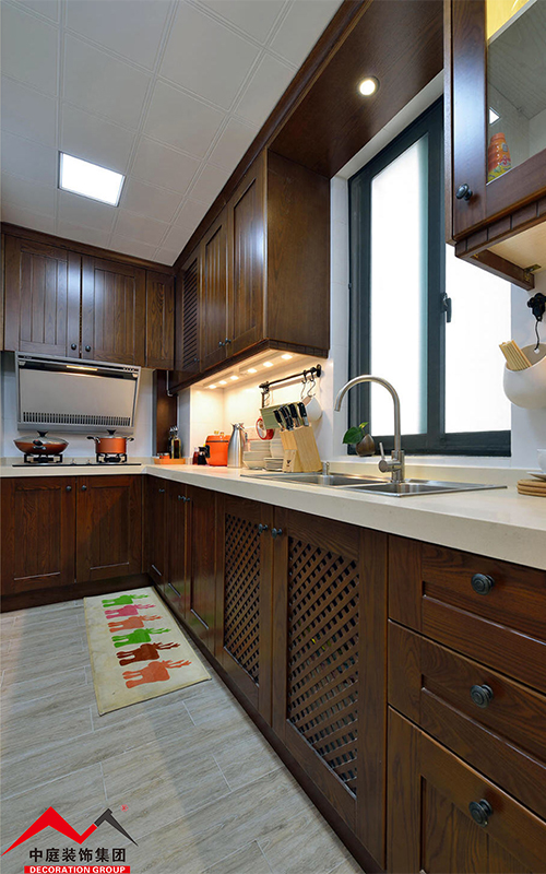 廚房繼續(xù)延續(xù)整個(gè)空間的輕美式風(fēng)格,木制門板造型精致美觀典雅,讓人賞心悅目!在這樣美的空間為一家人準(zhǔn)備餐點(diǎn),難道不是一種享受嗎?