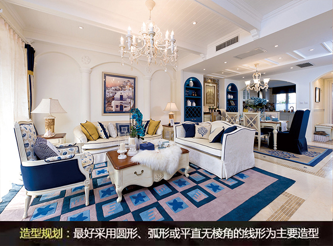 電視背景墻的造型選擇多樣,但是要注意避免背景墻有尖角、突出棱角造型,如三角形。盡量不要對(duì)背景墻進(jìn)行毫無(wú)意義的凌亂分割,最好采用圓形、弧形或平直無(wú)棱角的線形為主要造型。