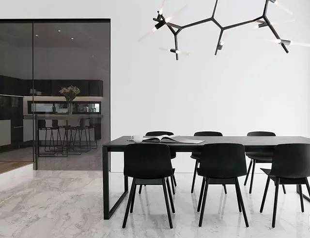 ▲淺灰白色的大理石光滑而有質(zhì)感,加之天花板也被刷白,整個(gè)空間看起來清爽極了。