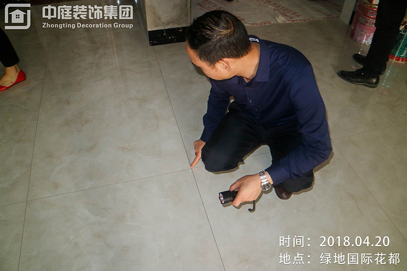 質(zhì)量管理中心吳總在細(xì)心的查驗地磚鋪設(shè)平整度