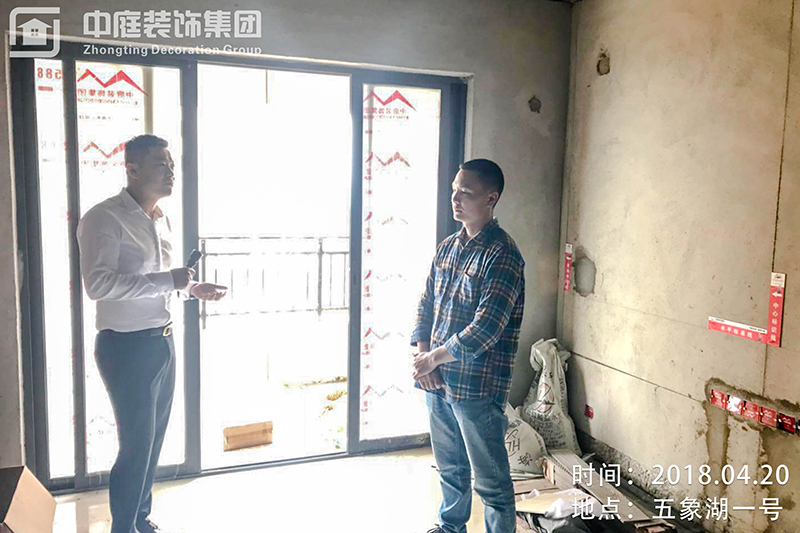 集團總裁丁總與剛好來現(xiàn)場的業(yè)主進(jìn)行交談,業(yè)主對公司服務(wù)特別滿意,他說到,他平時只有周六周日休息時才會來工地,公司的6大管家都會把每個流程在微信服務(wù)群上進(jìn)行匯報,很放心省心。