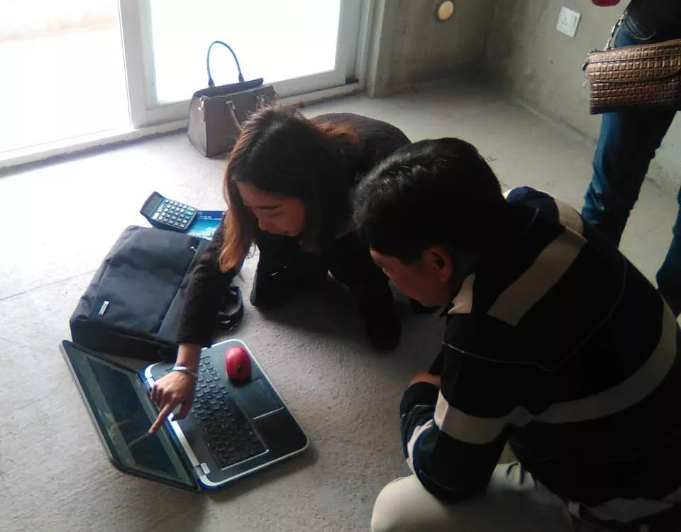 (林工與業(yè)主在工地確認(rèn)施工方案)