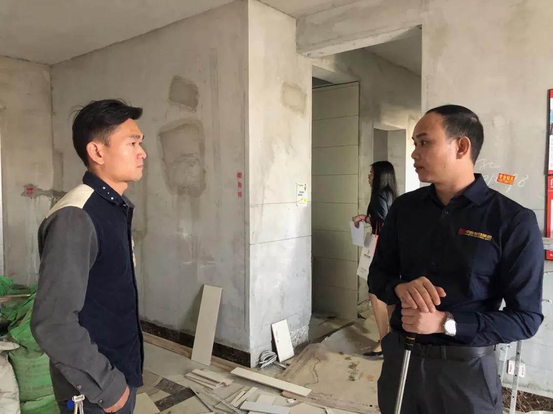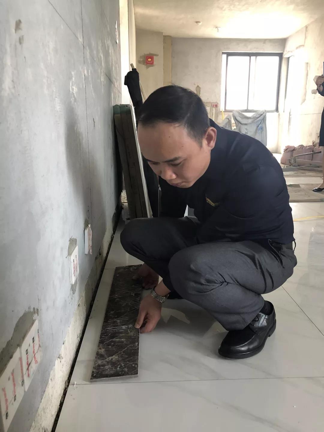 距離廣西教育廳住宅裝修集體開工儀式已過去一月有余,部分工地施工相繼進(jìn)入鋪磚階段。作為教育廳住宅裝修工程總指揮,肩負(fù)著集團(tuán)的使命和業(yè)主朋友們的信任,集團(tuán)副總裁、工程質(zhì)量管理中心總經(jīng)理吳文戰(zhàn)時刻牽掛著教育廳工地進(jìn)展情況。10月30日,吳總帶領(lǐng)質(zhì)管中心工程管理團(tuán)隊赴工地現(xiàn)場對工程材料、質(zhì)量和服務(wù)三大項進(jìn)行突擊檢查!