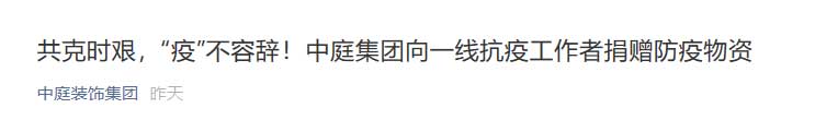 共克時(shí)艱,“疫”不容辭!中庭集團(tuán)向一線抗疫工作者捐贈(zèng)防疫物資
