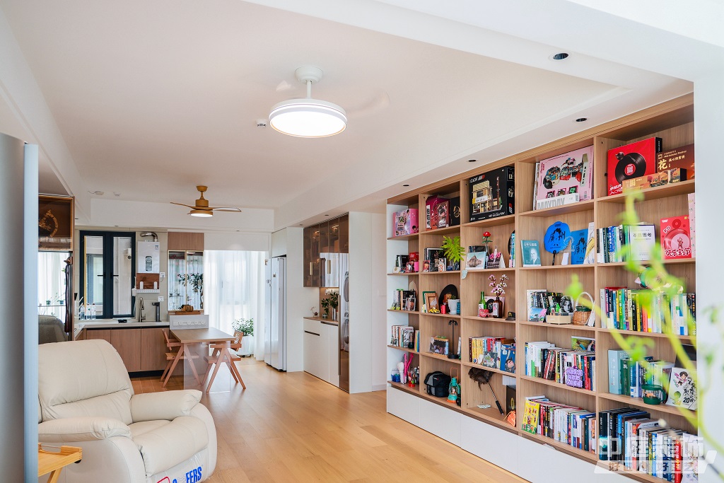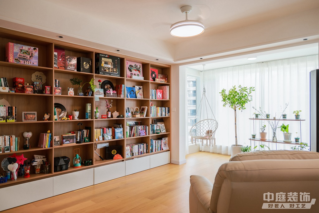 瀏覽量:889仿佛步入了一個(gè)自然與簡約交織的溫馨空間。淺色調(diào)的木質(zhì)地板營造出一種質(zhì)樸而不失高雅的氛圍??蛷d中央,去客廳化的設(shè)計(jì),一排原木色到頂書架擺滿精心挑選的物件和書籍,一進(jìn)門就能感受家的溫暖。