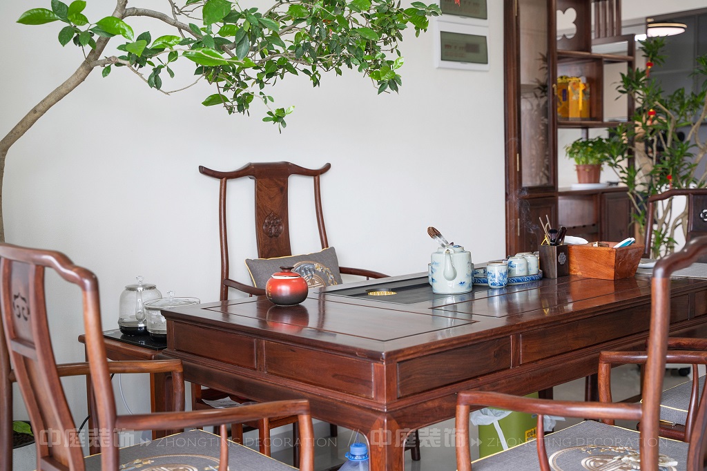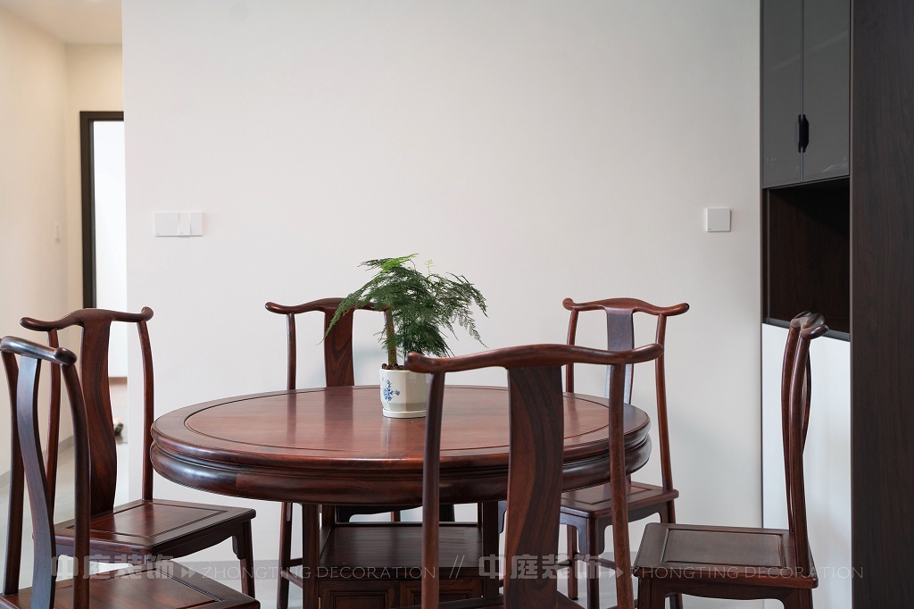 瀏覽量:162全屋以深色實木家具為主,雕花工藝精致細膩,盡顯中式家具的古樸質(zhì)感。搭配帶有傳統(tǒng)紋樣的抱枕,在細節(jié)處傳遞中式美學(xué)??臻g中綠植點綴其間,與木質(zhì)家具相得益彰,營造出自然清新的氛圍。無論是客廳的沙發(fā)組合,還是茶室的茶桌茶具,亦或是餐廳的圓桌設(shè)計,都在簡約的現(xiàn)代空間里,勾勒出中式家居的典雅與詩意。