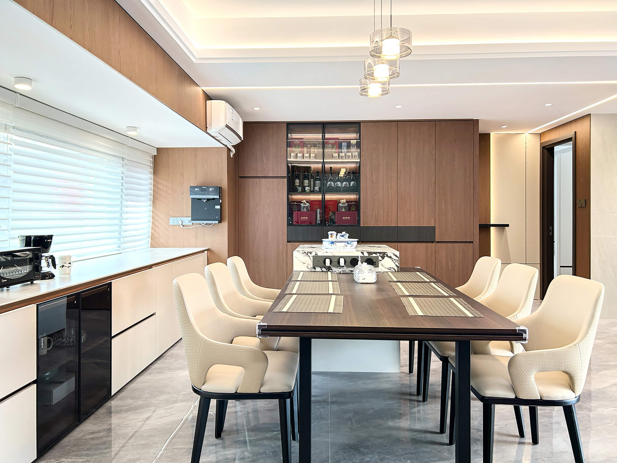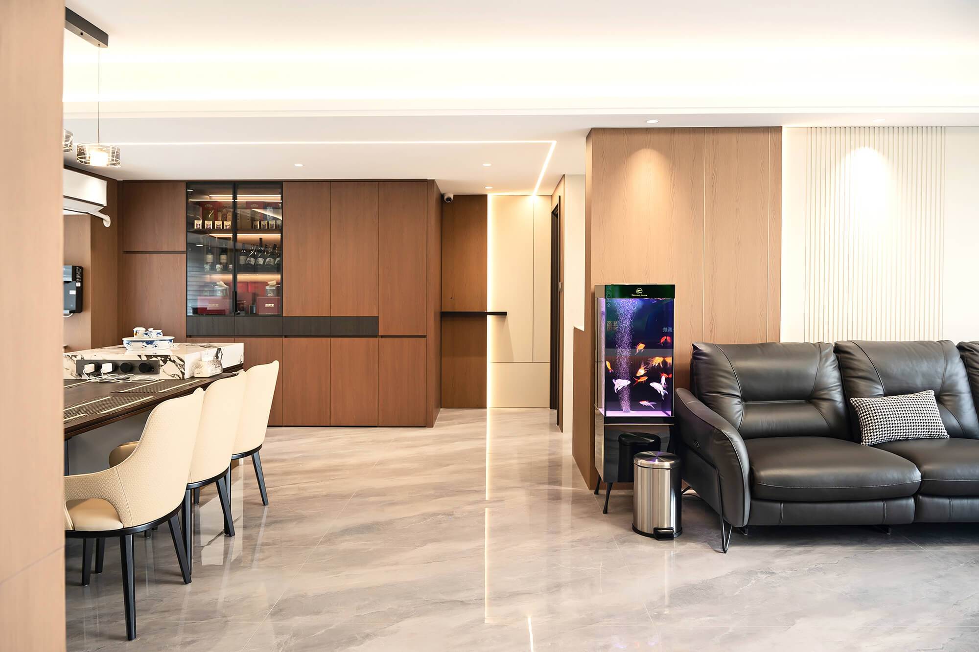 瀏覽量:265以 “少即是精” 為核心,用純粹線條與留白奠定基調(diào),搭配金屬巖板等質(zhì)感材質(zhì)作為點(diǎn)綴,拒絕冗余裝飾。色彩以低飽和度中性色為主,通過材質(zhì)碰撞凸顯高級(jí)感,營造克制而精致、兼具舒適與格調(diào)的空間氛圍。