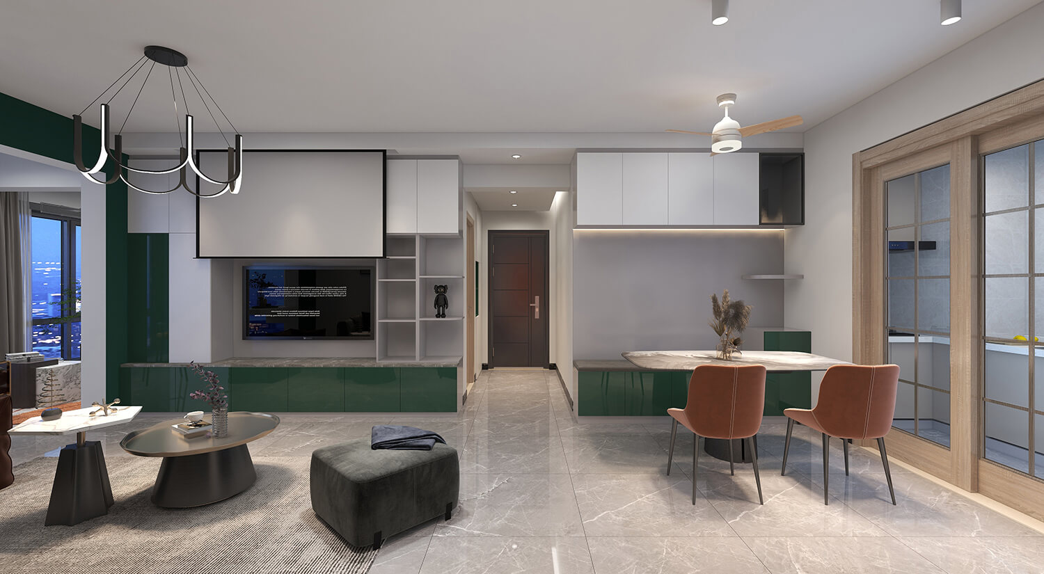 瀏覽量:223本案例戶型為:3房1廳1衛(wèi),總面積125㎡。這是一套輕奢風(fēng)格的房子。設(shè)計師采用開放式布局,將客廳、餐廳融為一體。這樣不僅增加了家庭成員的互動和交流,也可以讓房間看起來更加寬敞。輕奢金屬飾品與布藝沙發(fā)的結(jié)合,使得畫面具有時尚感又不乏溫馨。