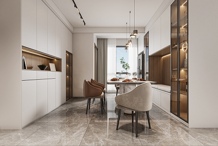 空間大面積描繪溫暖的棕灰色調(diào),將優(yōu)雅而內(nèi)斂的視覺觀感散布于每一個(gè)細(xì)節(jié)之中。設(shè)計(jì)師嘗試以一種接近生活本質(zhì)的視角觀察點(diǎn)滴日常的豐富性,將生活主場(chǎng)景面向自然景色,創(chuàng)造開闊明亮、安靜舒適的居住氛圍,讓每一位居住其中的人與自然對(duì)話,感受自在。